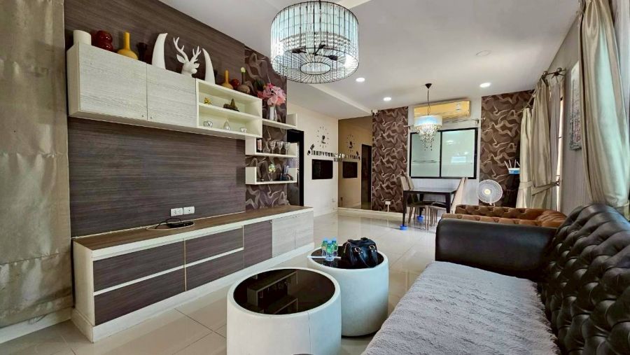 บิ่วอินชั้นวางทีวี แยกโซนนั่งเล่น โต๊ะอาหาร