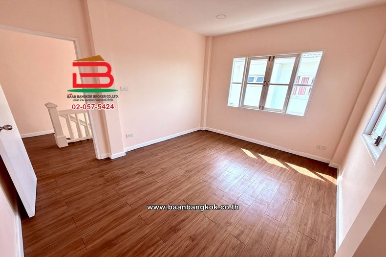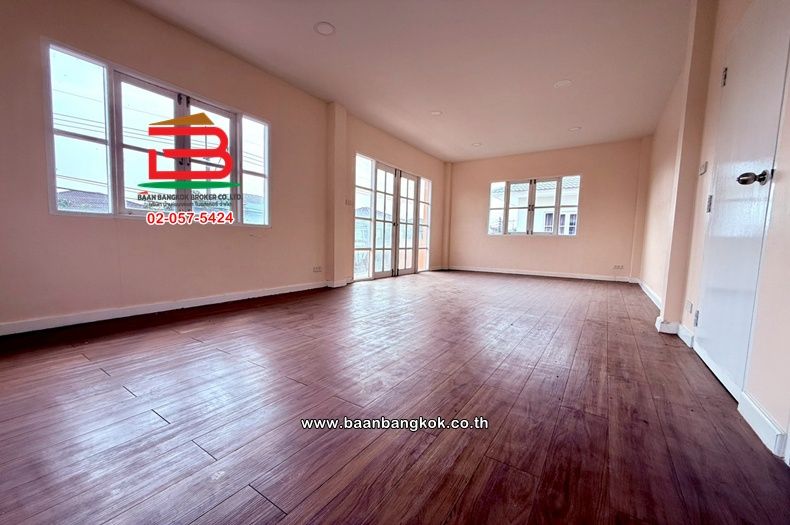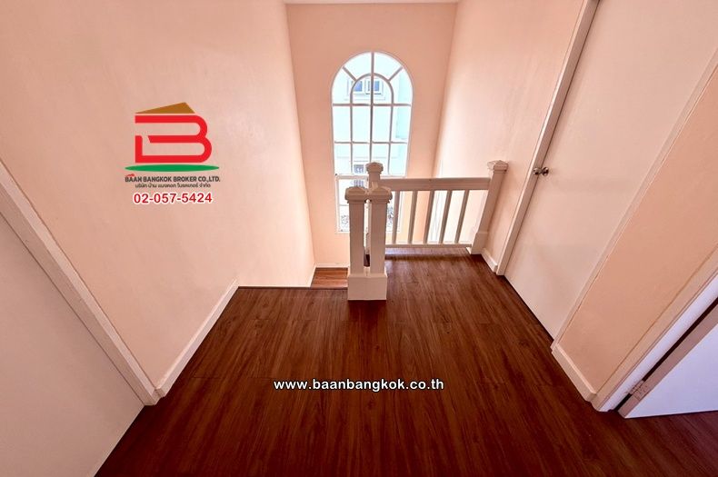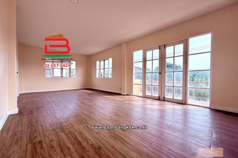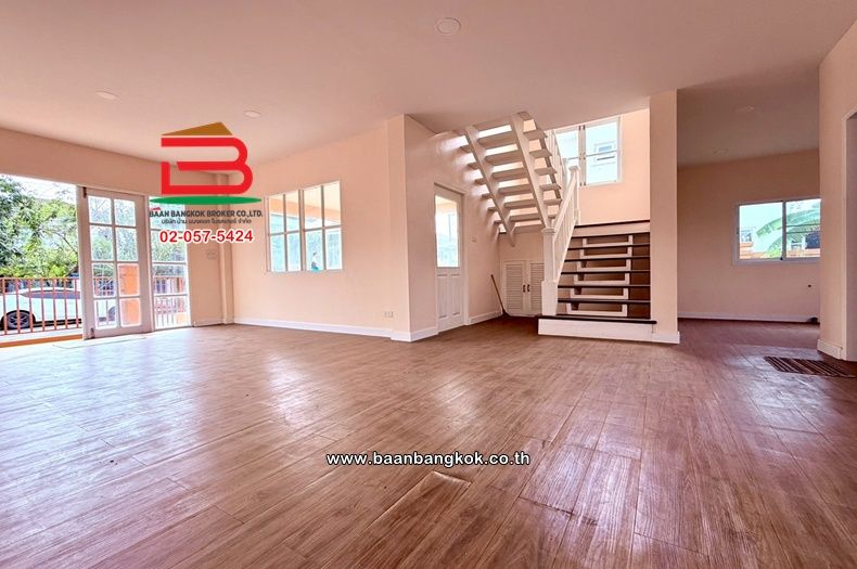 การตกแต่ง : รีโนเวทใหม่ทั้งหลัง สภาพดี พร้อมอยู่ บรรยากาศภายในบ้านร่มรื่น ชั้นล่างของบ้านปูด้วยกระเบื้องแกรนิตโต้ ชั้นบนปูด้วยไม้ปาเก้ บริเวรด้านข้างของบ้านกว้างขวาง หน้าบ้านติดกับถนนเมน