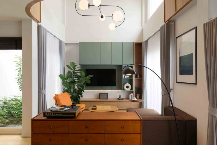 - 1 ห้องนั่งเล่น (โถงสูง 6.10 ม.)