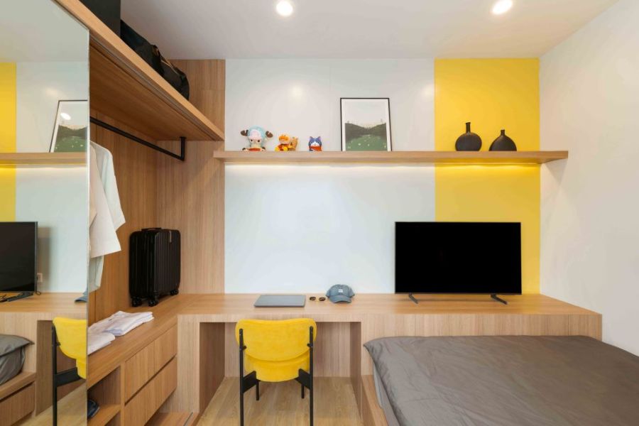 - 1 ห้องนั่งเล่น (โถงสูง 5.9 ม.)