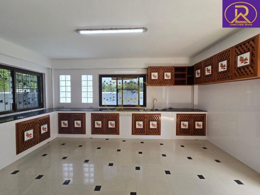 ห้องครัว : 1 ห้องใหญ่ ต่อเติมออกจากตัวบ้านเป็นสัดส่วน พร้อมเคาเตอร์ครัว, ตู้เก็บของและซิงค์ล้างจาน