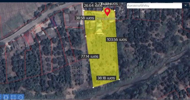 พื้นที่ตามโฉนดครุฑแดง 3 งาน 22 ตารางวา หน้ากว้างติดถนนคอนกรีต 38 เมตร