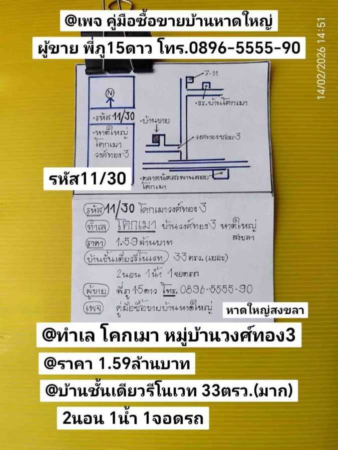 @ทำเล โคกเมา หมู่บ้านวงศ์ทอง3 หาดใหญ่ สงขลา