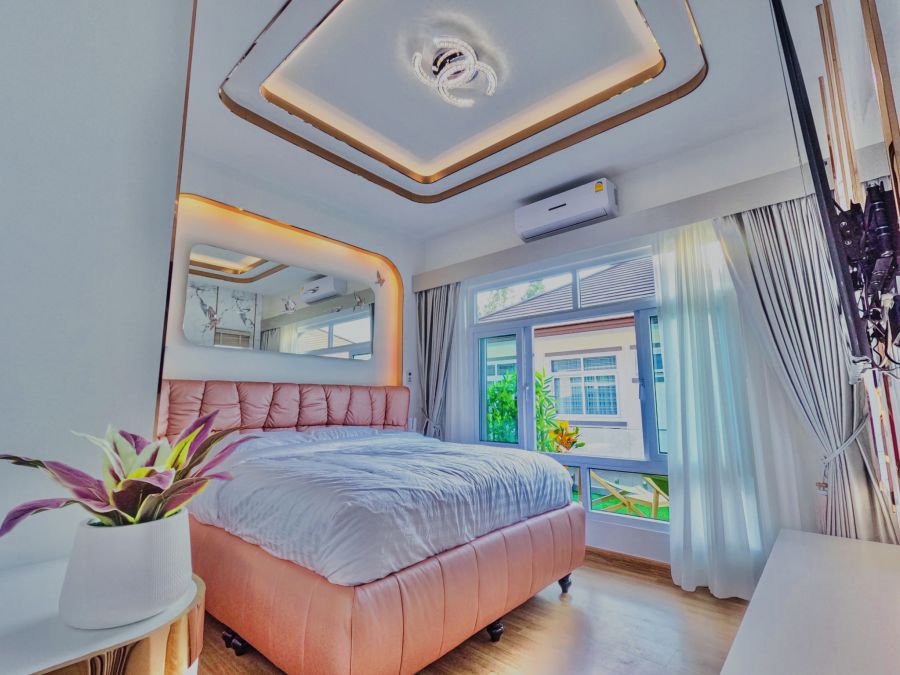 - 4 ห้องนอน 3 ห้องน้ำ 1 ห้องนั่งเล่น 1 ห้องครัว 2 จุดนั่งชิวชมวิวและดาดฟ้า 2 ที่จอดรถ