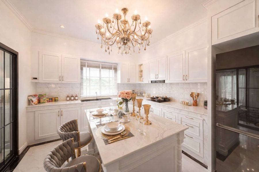 - ครัวบิ้วอิน + ซิงค์ + เตาไฟฟ้า + เครื่องดูดควัน