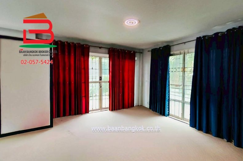 การตกแต่ง : พื้นปูกระเบื้องแกรนิตโต้ ห้อง master bedroom ซึ่งเป็นห้องใหญ่ที่สุดในบ้าน มีห้องน้ำในตัว ภายในบ้านติดมุ้งลวด, เหล็กดัด, ปั้มน้ำ, แท็งค์น้ำ, แอร์ บรรยากาศในโครงการเน้นความร่มรื่นด้วยไม้นานาพันธุ์ มีระบบรักษาความปลอดภัย 24 ชั่วโมง กล้อง CCTV ฟิตเนส สวนสาธารณะออกกำลังกาย สนามเด็กเล่น