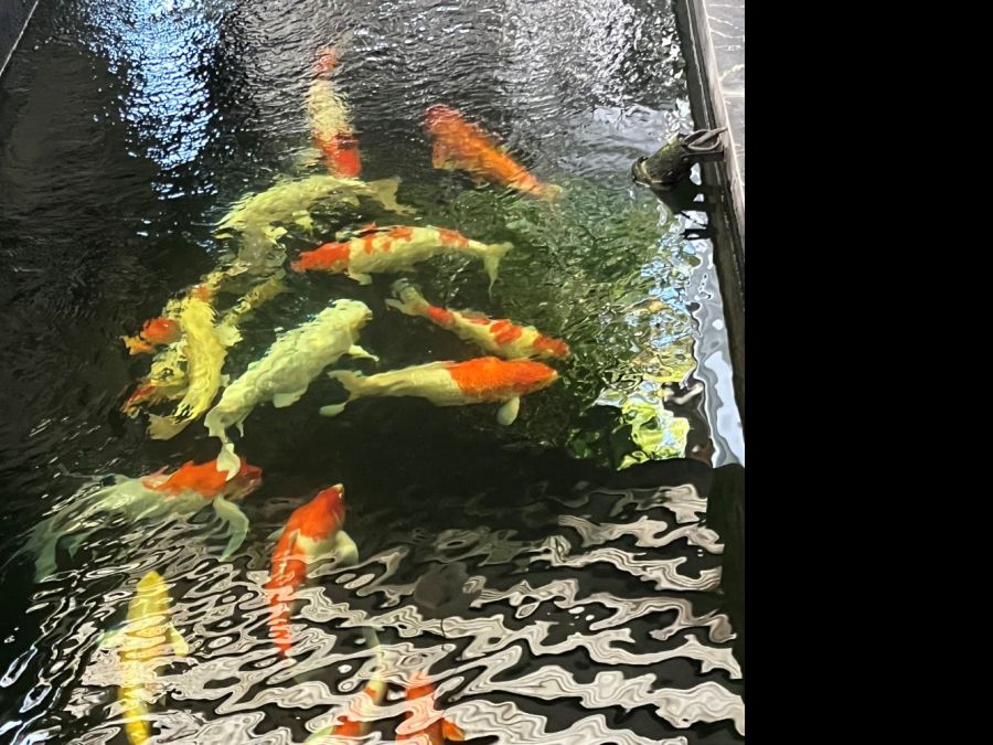 - บ่อปลาฮวงจุ้ยบริเวณทางเข้า สัญลักษณ์แห่งความมั่งคั่ง ร่ำรวย และเงินทองไหลมาเทมา