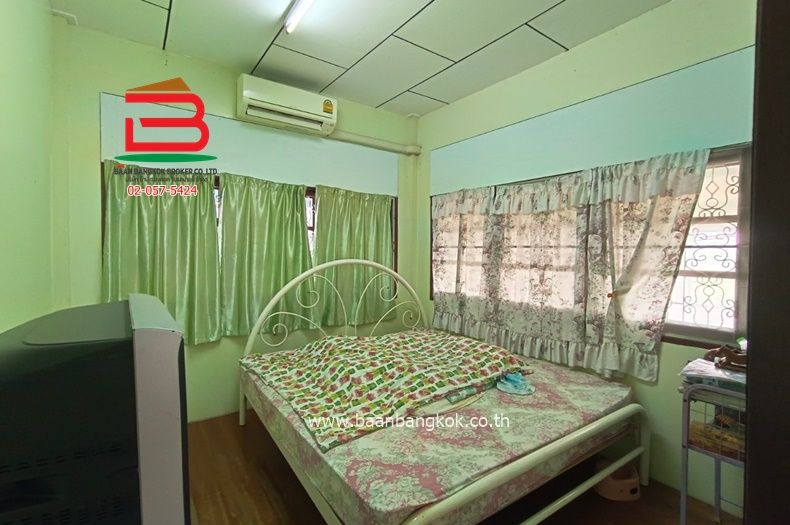 การตกแต่ง : พื้นชั้นล่างปูกระเบื้อง พื้นชั้นบนเป็นพื้นไม้ ภายในติดเหล็กดัด-มุ้งลวด แอร์ 2 เครื่อง