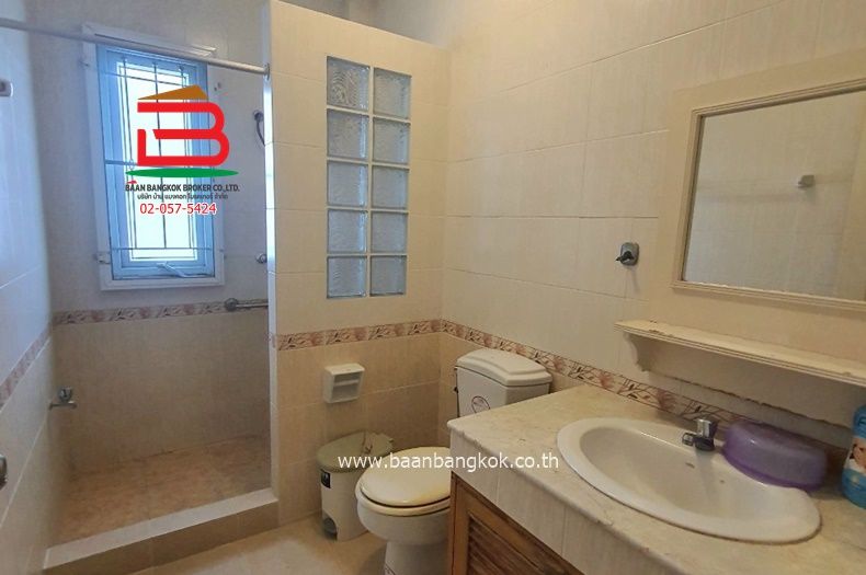 การตกแต่ง : พื้นชั้นล่างปูด้วยกระเบื้องแกรนิตโต้ ชั้นบนปูลามิเนต มีพื้นที่ด้านข้างทำเป็นสวนได้ ทำเลดี การเดินทางสะดวกเข้าออกได้หลายเส้นทาง บ้านสภาพดีหลังใหญ่มีพื้นที่ใช้สอยเยอะอยู่ใกล้สวนสาธารณะและคลับเฮ้าส์ของหมู่บ้าน บรรยากาศร่มรื่น ติดเหล็กดัด-มุ้งลวด มีปั้มน้ำ-แท็งค์น้ำ พร้อมแอร์ 5 เครื่อง บ้านมีบริเวณด้านข้างทำสวนได้ มีสิ่งอำนวยความสะดวก อาทิ รปภ.24 ชม.