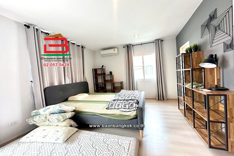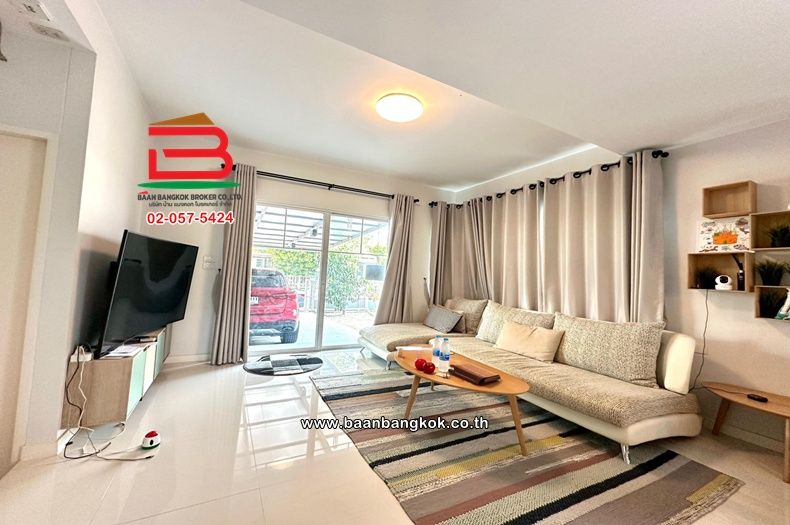 การตกแต่ง : ต่อเติมโรงจอดรถ และบิ้วอินภายในเรียบร้อย พร้อมอยู่ พร้อมเฟอร์นิเจอร์คุณภาพและเครื่องใช้ไฟฟ้า มีพื้นที่สนามหญ้าสีเขียวด้านข้างบ้าน บ้านเป็นสไตล์โมเดิร์น หน้าบ้านหันทางทิศเหนือ ติดตั้งปั๊มน้ำใหม่ แทงค์น้ำยี่ห้อ DOS รุ่นที่มีที่เก็บปั๊มในตัว พร้อมแอร์ 3 เครื่อง