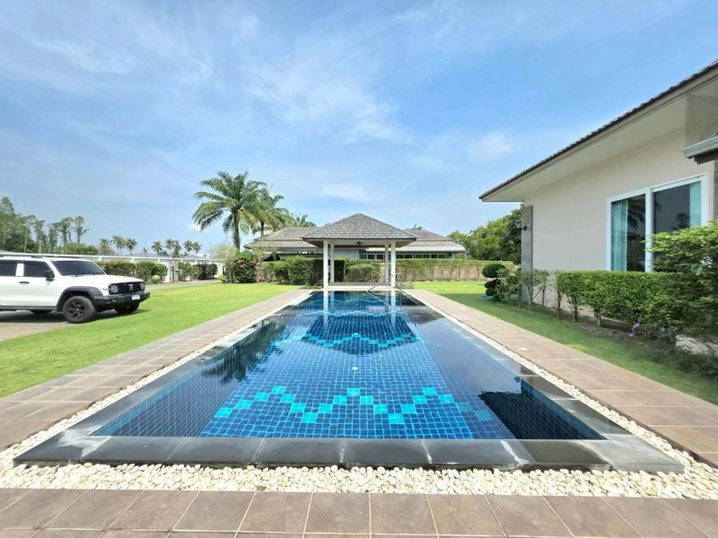 มีศาลานั่งเล่นบริเวณสวนริมสระว่ายน้ำ