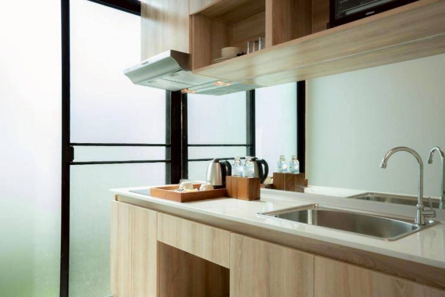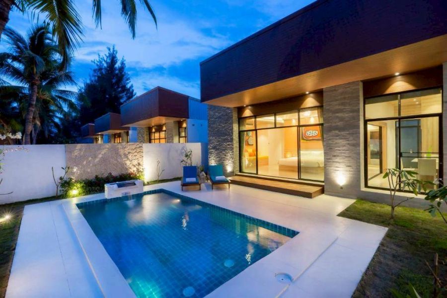 - รีสอร์ท พร้อมสระว่ายน้ำส่วนตัว ขนาด 150 ตารางเมตร ที่ดิน 53.6 ตารางวา เตียงคิงส์ไซด์ ห้องอาบน้ำฝักบัวแบบวออล์คอิน อ่างอาบน้ำ ชุดครัว
