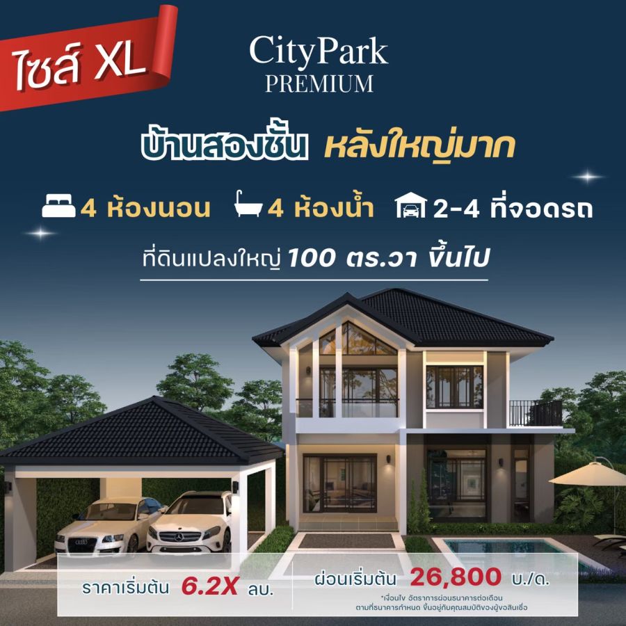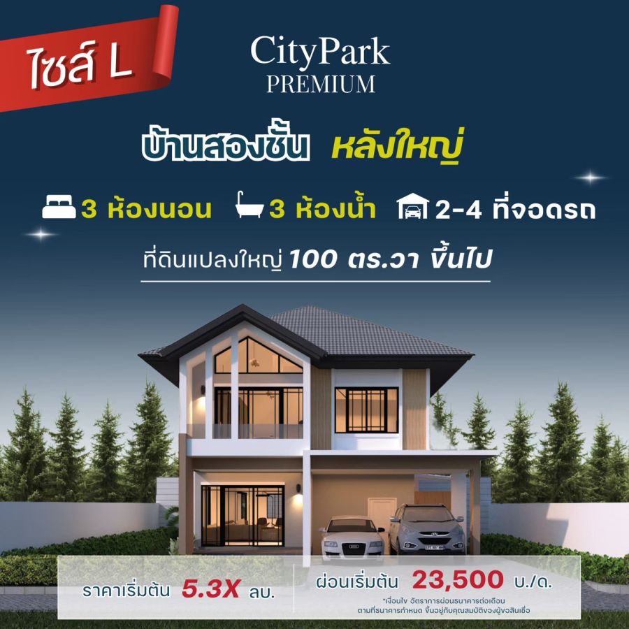 บ้าน2 ชั้นหลังใหญ่ 2 ขนาด (ไซส์ L,ไซส์ XL) แบบบ้าน 3 ห้องนอน 3 ห้องน้ำ
