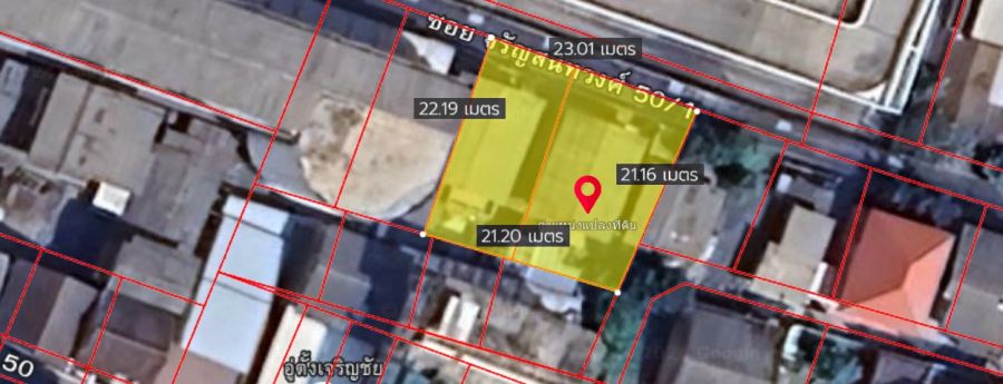 ขนาดที่ดิน กว้างติดถนนประมาณ 23 เมตร ลึกประมาณ 21 เมตร ถนนซอยกว้างประมาณ 6 เมตร