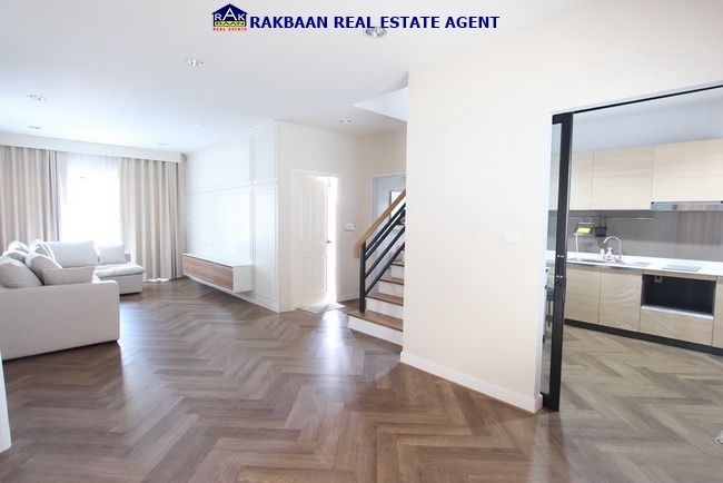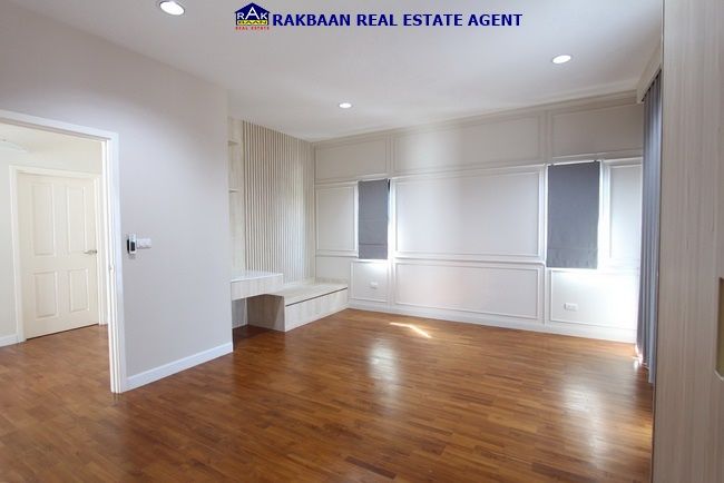 ตกแต่ง : พื้นชั้นล่างใช้กระเบื้อง SPC,พื้นชั้นบนปาเก้ไม้สักทอง,แอร์ 4 เครื่อง,ผ้าม่าน,บิลท์อิน,โซฟา,ปั๊มน้ำ,แท้งค์น้ำ