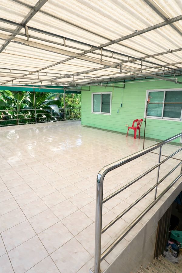 - ระเบียงตากผ้าบนระเบียงขนาดใหญ่