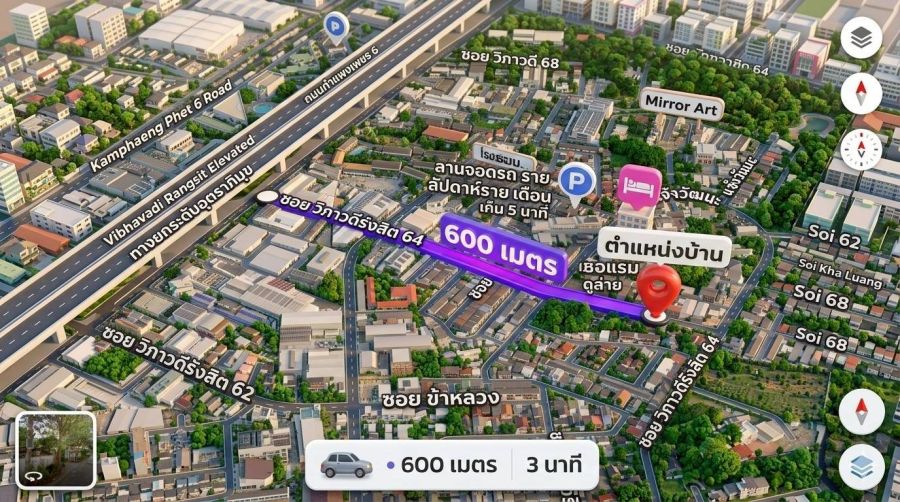 • ทำเลศักยภาพ (Prime Location): เข้าจากปากซอยวิภาวดี 64 เพียง 600 เมตร หรือเข้าจากซอยแจ้งวัฒนะ 1 เพียง 1.2 กม. เชื่อมต่อถนนสายหลักได้สะดวกที่สุด