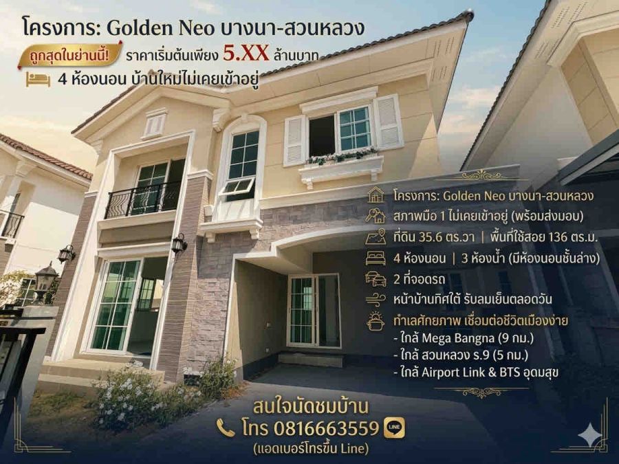 ขาย ถูกสุด Golden Neo บางนา-สวนหลวง 4 ห้องนอน บ้านใหม่ไม่เคยเข้าอยู่ ใกล้เมือง Airport Link BTS อุดมสุข