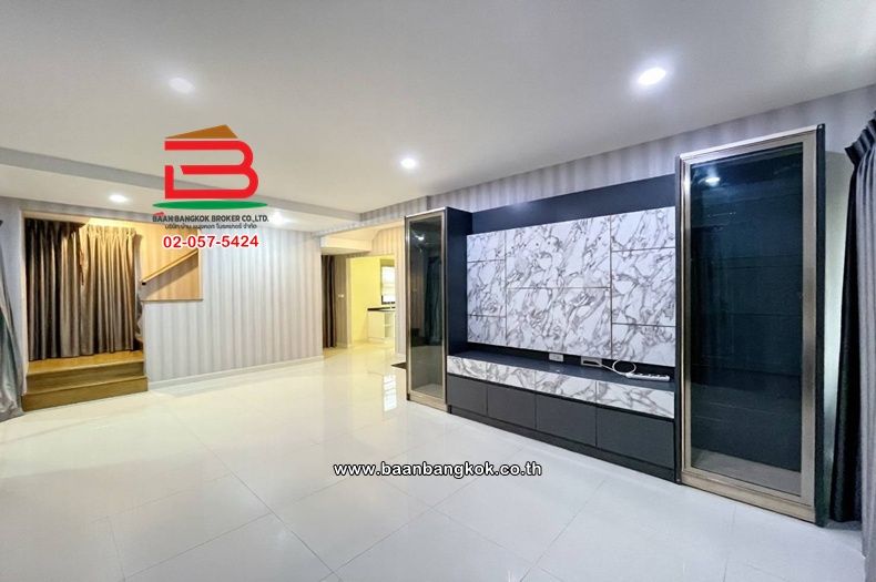 การตกแต่ง : บิ้วอินชั้นวางทีวี เค้าเตอร์ครัวพร้อมใช้งาน ต่อเติมหลังคาโรงจอดรถ หลังคาหน้าบ้าน มุ้งลวดเกือบทั้งหลัง ติดวอลเปอเปอร์ทั้งบ้าน ฟรีเครื่องทำน้ำอุ่น 2 ตัว แอร์ห้องนอนใหญ่ 1 เครื่อง