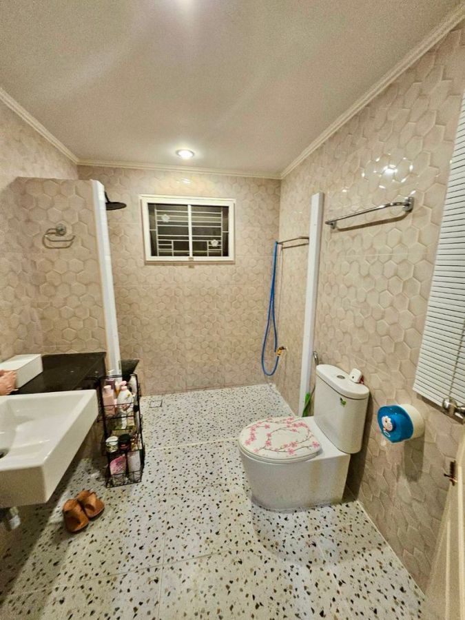 ปูกระเบื้องห้องน้ำใหม่ และห้องกระจกต่อเติมที่ระเบียงชั้นสอง เก็บของ ชมวิวได้