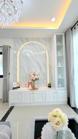 - โซนรับแขก: บิ้วอินชั้นวางทีวี และโซฟานุ่มชุดใหญ่
