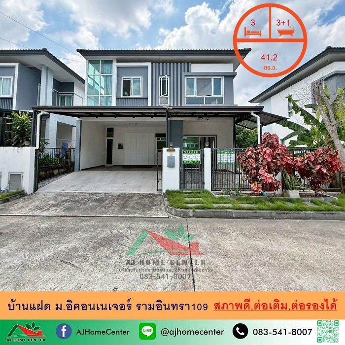 ขายบ้านแฝด41.2ตรว. ม.อิคอนเนเจอร์ รามอินทรา109 สภาพดีต่อเติมพร้อมอยู่ จัดกู้ฟรี