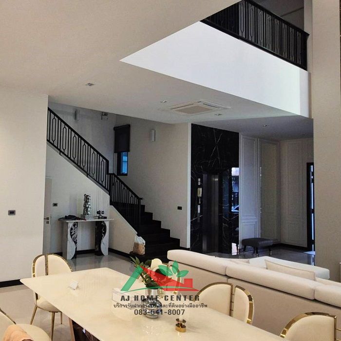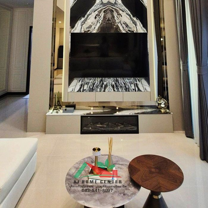 - วัสดุปูพื้น : หินทราเวอร์ทีน / ไม้สักจริง