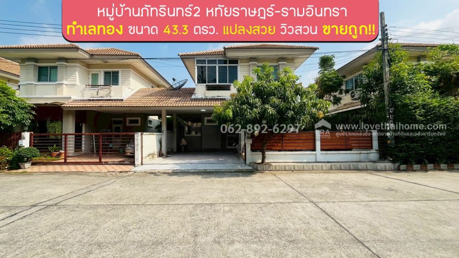ขายบ้านเดี่ยว 2 ชั้น ถนนหทัยราษฎร์-รามอินทรา หมู่บ้านภัทรินทร์2 ทำเลทอง ขนาด 43.3 ตรว. แปลงสวย วิวสวน ราคาเพียง 4.5 ล้านบาท บ้านดี วิวสวนหายากในราคานี้!