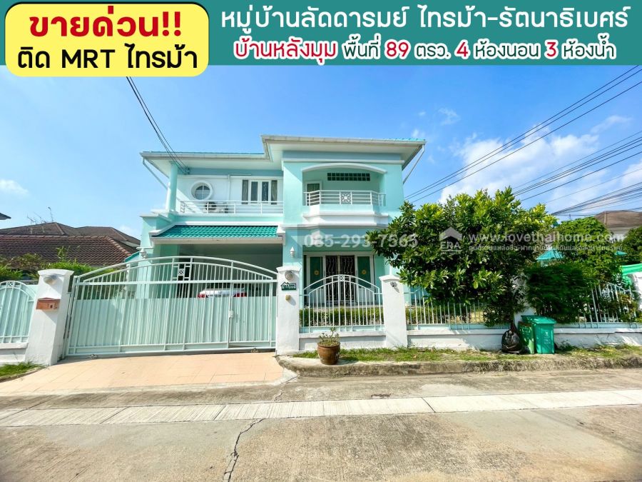 ขายบ้านเดี่ยว 2 ชั้น หมู่บ้านลัดดารมย์ ไทรม้า รัตนาธิเบศร์ บ้านหลังมุม พื้นที่ 89 ตารางวา ขาย 10.8 ล้านบาท โครงการใหญ่ ติด MRT สถานีไทรม้า