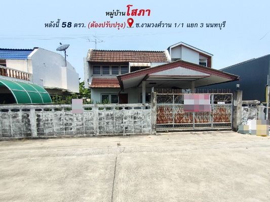 ขายบ้านเดี่ยว 2 ชั้น 58 ตรว. หมู่บ้านโสภา ซ.งามวงศ์วาน 1/1 แยก 3 นนทบุรี บ้านต้องปรับปรุง ใกล้สี่แยกแคราย ใกล้รถไฟฟ้าสายสีชมพูและสายสีม่วง