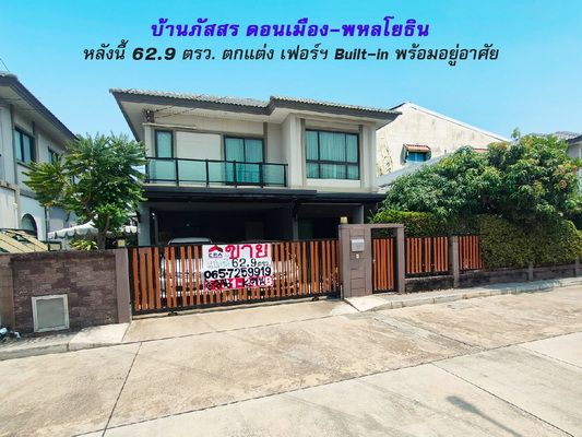 ขายบ้านเดี่ยว 2 ชั้น 62.9 ตรว. หมู่บ้านภัสสร ดอนเมือง-พหลโยธิน ซ.2/5 ถ.พหลโยธิน89 ปทุมธานี ใกล้แม็คโครรังสิต,สนามบินดอนเมือง,ฟิวเจอร์พาร์ครังสิต ตกแต่ง เฟอร์นิเจอร์บิวท์อิน พร้อมอยู่อาศัย เจ้าของรีบขาย