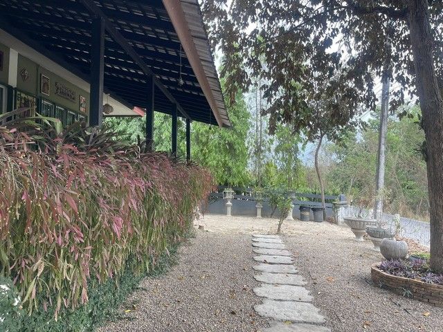 บริเวณรอบบ้าน บรรยากาศดี ร่มรื่น ลักษณะที่ดินเป็นเนินดอย ไม่เปลี่ยว