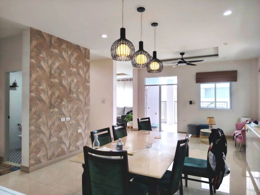 แต่งสไตล์โล่ง โปร่งสบาย ไม่อับ ไม่ทึบ. เป็นเฟสแรกที่สร้าง 3ชั้น ฉะนั้นโซนนี้หลังนี้จะเนื้อที่ลึกกว่าหลังอื่น.