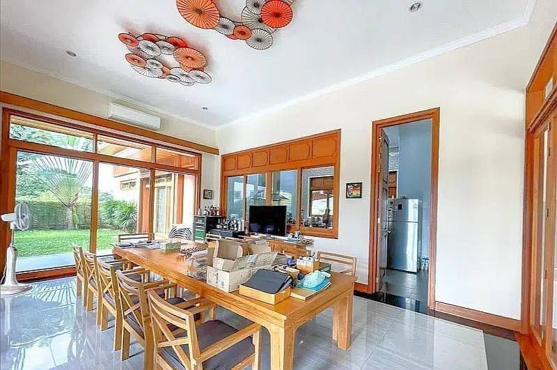 ห้องรับประทานอาหารขนาดใหญ่ พร้อมโต๊ะรับประทานอาหาร โต๊ะไม้สักขนาดใหญ่ สำหรับ 8 ที่นั่ง พร้อมเก้าอี้