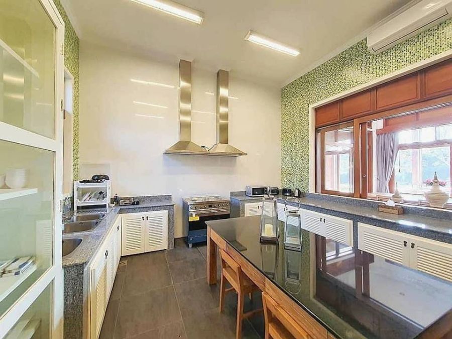 - ห้องครัวฝรั่ง ขนาดใหญ่ พร้อมเตาอบ ที่ดูดควันไมโครเวฟ ตู้เย็นขนาดใหญ่ เคาร์เตอร์ปูด้วยหินแกรนิกแบบสวยงาม และแข็งแรงทนทาน