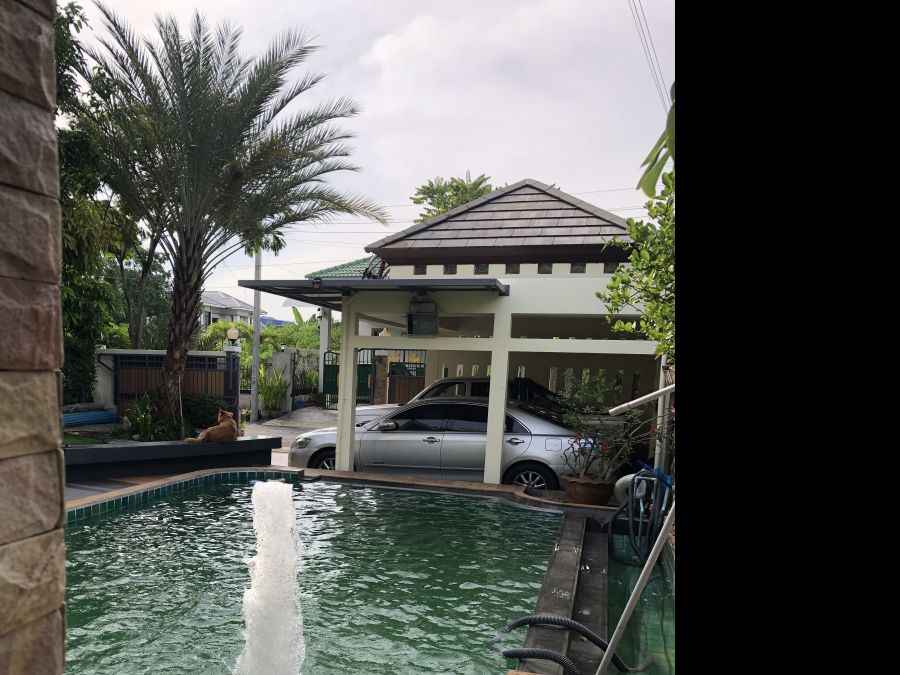 3 ห้องน้ำ 1 ห้องทำงานและห้องโถงบนและล่าง สระว่ายน้ำ ขนาด 4.20 x 6.00 ม. ลึก 1.20 - 1.50 ม. โรงจอกรถ 5.00 x 5.00 ม. ลานคอนกรีตหน้าบ้านจอดรถได้ 2 คัน สนามหญ้าพร้อมผักสวนครัวรั้วกินได้รอบบ้าน เครื่องปรับอากาศ 3 ชุด เครื่องทำน้ำอุ่น 1 ชุด เตาแก๊สพร้อมเครื่องดูดควัน ประตูรั้วรีโมท