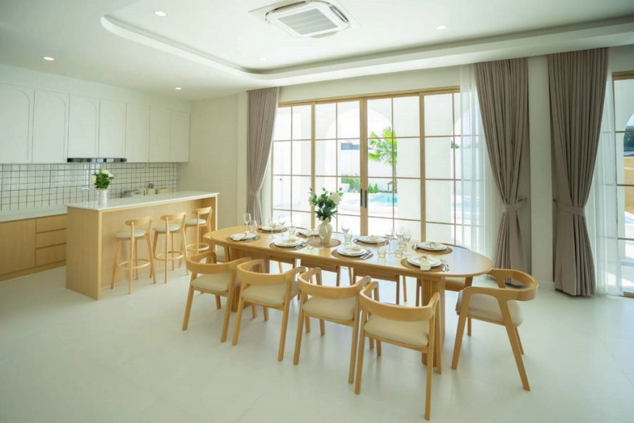 มีครัวไทย ครัวฝรั่ง โต๊ะรับประทานอาหาร โต๊ะพูลขนาด 8 ฟุต อ่างอาบน้ำ ผนังซ่อนไฟ สามารถทำธุรกิจได้ครับ