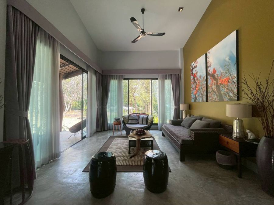 Set on a spacious land plot of 2,544 sqm (1 Rai 236 Sqw), with a living area of 650 sqm, the villa features 3 bedrooms, 3 bathrooms, a maid’s quarters with a private bathroom, 2 elegant living rooms, and 3 dedicated storage rooms. The highlight is a saltwater swimming pool with a relaxing veranda — the perfect spot to take in the breathtaking natural surroundings and fresh mountain air.