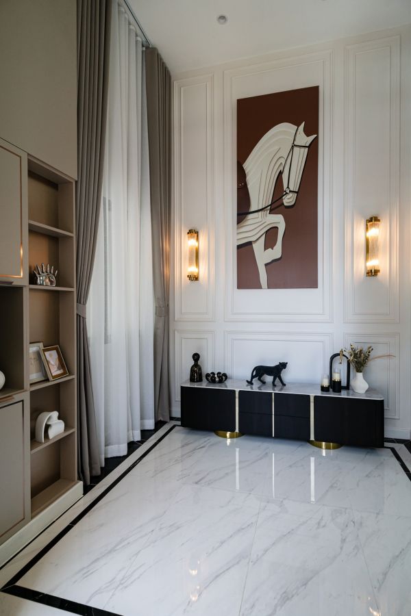 • ภายในบ้าน: ตกแต่งครบด้วยวัสดุ เฟอร์นิเจอร์ และเครื่องใช้ไฟฟ้าระดับพรีเมียม