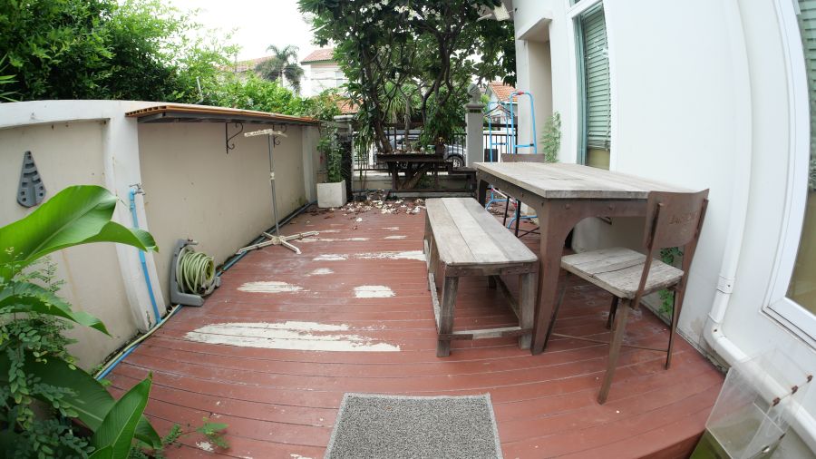 🪴 ด้านข้างต่อเติมระเบียงไม้ พร้อมชุดโต๊ะนั่งพักผ่อน
