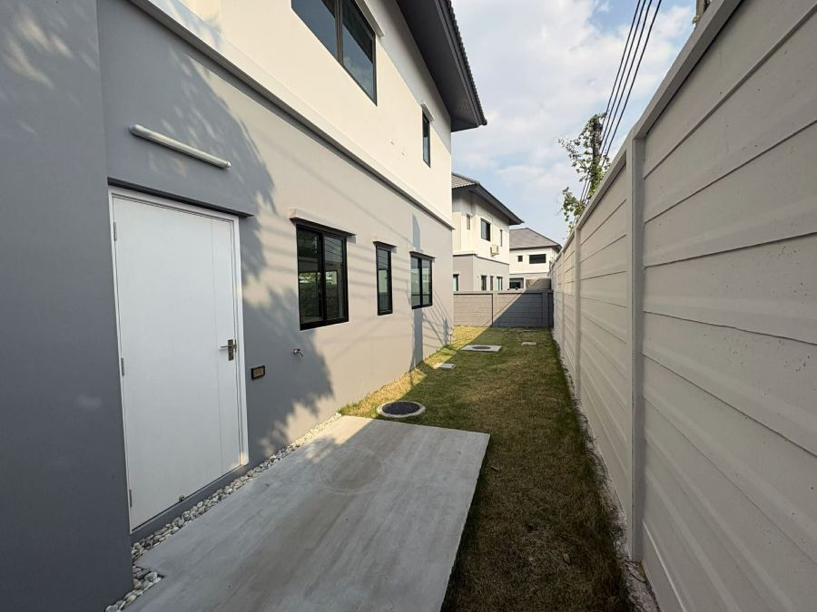 บ้านใหม่กริ๊บไม่เคยมีผู้เช่าอาศัย ติดแอร์ทั้งหลัง บ้านหันทางทิศเหนือ หน้าบ้าน หลังบ้านไม่ติดใคร