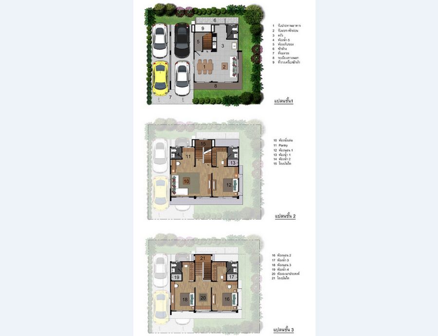 - บ้านเดี่ยว 3 ชั้น เนื้อที่ 54 ตารางวา พื้นที่ใช้สอย 260 ตารางเมตร