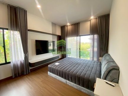 ตกแต่ง : บ้านเดี่ยว 2 ชั้น พื้นที่ใช้สอย 190 ตร.ม สไตล์ Modern Classic รองรับ Universal Design ด้วยฟังก์ชัน 4 ห้องนอน, 4 ห้องน้ำ จอดรถยนต์ได้ 3 คัน ทุกหลัง ออกแบบได้ตอบโจทย์การใช้งานและเพิ่มความสะดวกสบายในการอยู่อาศัยและใช้ชีวิตด้วยระบบ Smart Home Automation ในบ้าน เช่น Digital Door Lock, IP Camera, Smoke Sensor, Motion Sensor และ Siren รองรับเทคโนโลยีแห่งอนาคต EV Charger และ Solar Rooftop ทันสมัยร่วมรักษ์โลก ตัวบ้านใหม่ อายุยังไม่ถึงปี แต่งสวย พร้อมเฟอร์ครบครัน แถมแอร์ 3 ตัว, ทีวี 65 นิ้ว 2 เครื่อง, ครัวบิ้วท์ฯ, เตาไฟฟ้า, ชุดรับแขก, โต๊ะรับประทานอาหาร พร้อมwalk in closet ในห้องนอนใหญ่ บริเวณบ้านกว้าง มีมุมนั่งเล่น สนามหญ้า บรรยากาศดี สวย พร้อมอยู่
