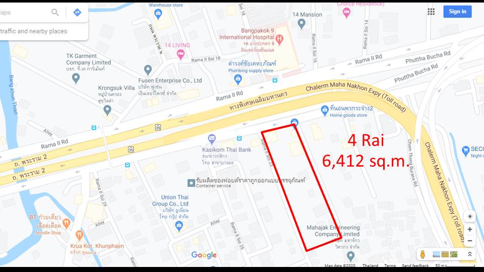 ให้เช่าที่ดิน 4 ไร่ ติด ถ.พระราม2 ตรงข้ามโรงพยาบาลบางปะกอก 9 อินเตอร์เนชั่นแนล