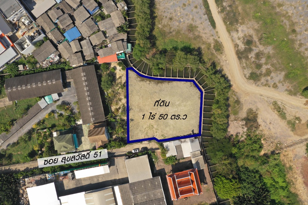 ขายพร้อมผู้เช่า ด่วนที่ดินเปล่า ถมแล้ว สุขสวัสดิ์ 51 ขนาดพื้นที่ 1ไร่ 50 ตร.ว. (หน้ากว้างประมาณ 50 เมตร ลึก 48 เมตร ) เข้าจากริมถนนใหญ่ เพียง 150 เมตร ถนนรถสวนได้ รถใหญ่เข้าได้