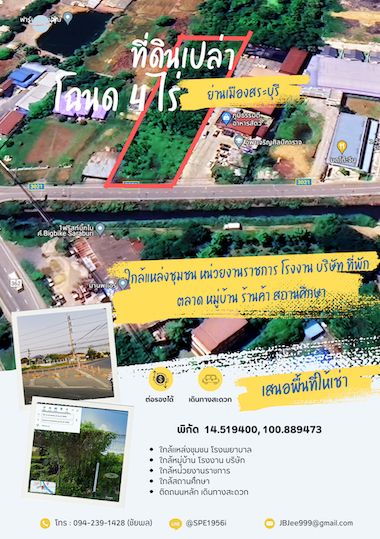 ปล่อยเช่าที่ดินเปล่า พิกัด เมืองสระบุรี ค่าเช่าตามแต่ตกลง ติดถนนใหญ่ ใกล้แหล่งชุมชน
