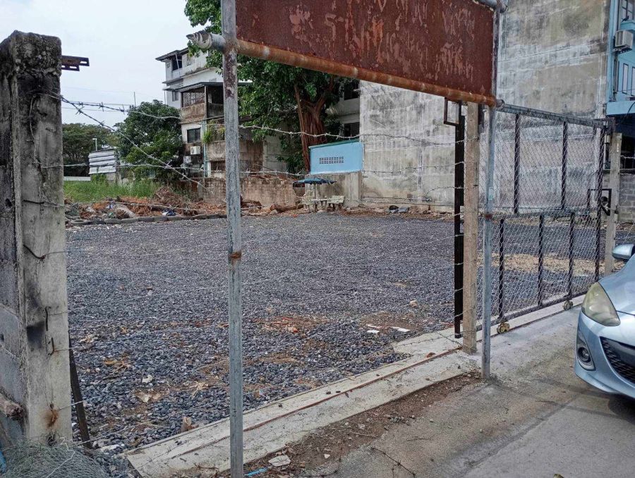 ขนาดที่ดิน 59 ตร.วา ถมแล้วสูงเท่าถนน อยู่ในซอย รรเทศบาล4 ตรงข้ามโรงพยาบาลสมุทรปราการ
