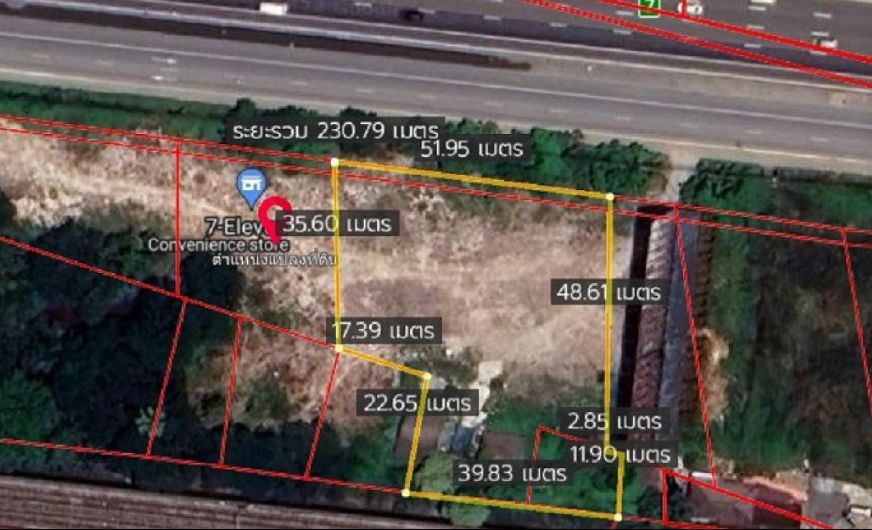 ให้เช่าที่ดิน ติดถนนใหญ่มอเตอร์เวย์ขาเข้า พระราม 9 - สุวรรณภูมิ ถมแล้ว 1 ไร่ 3 งาน หน้ากว้าง ติดกับ 7-11