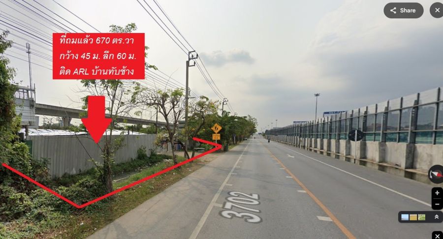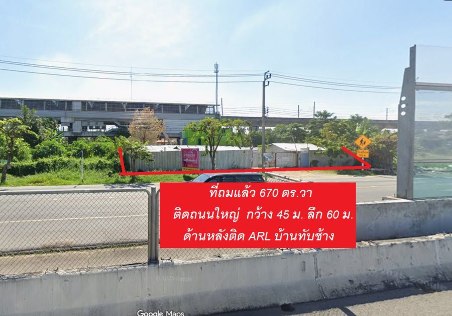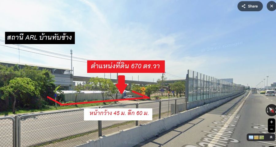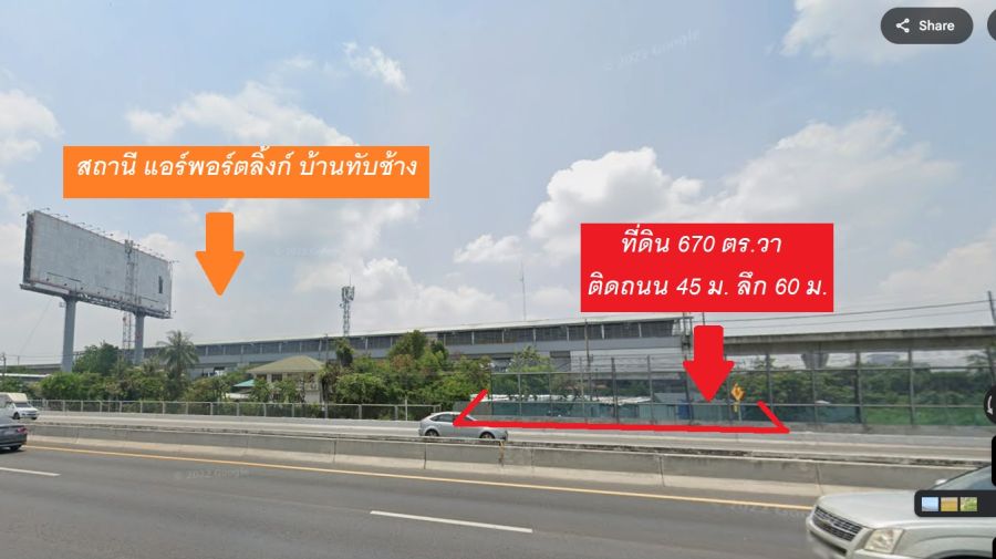 ที่เป็นรูปสี่เหลี่ยมผืนผ้าสวยมาก ที่ดินหน้ากว้างติดถนนประมาณ 40 เมตร ลึกประมาณ 64 เมตร ด้านหน้าติดถนนใหญ่มอเตอร์เวย์ รถผ่านเยอะมาก ด้านหลังติดสถานีรถฟ้าแอร์พอร์ตลิ้งก์ มองจากสถานีลงมาเป็นที่ดินชัดเจน เดินทางสะดวกเข้าออกได้หลายทาง