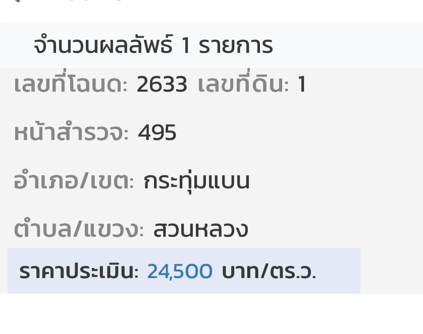 เลขที่โฉนด 2633 | ราคาประเมินกรมที่ดิน 24,500 บาท/ตรว.